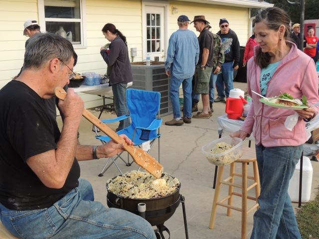 After dinner and a little bit of relaxation, everyone heads to the bonfire area. The fire is lit and the party begins. Crossroads hits the stage playing blues, rock, county, and anything that is suggested. People huddle around the fire tapping feet, chatting with old friends, sharing comradely and enjoy the evening as the temperature drops.